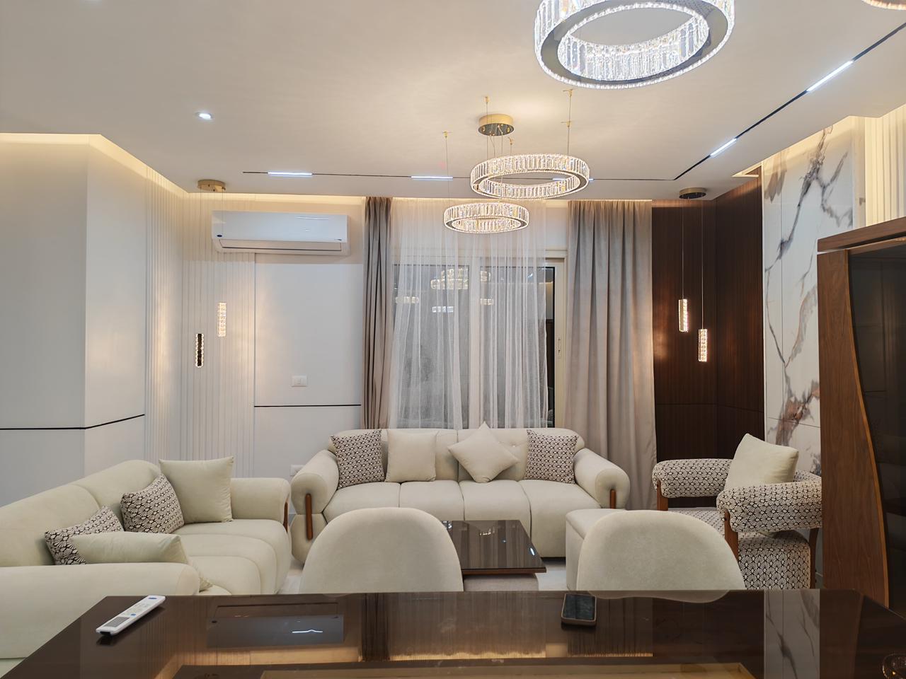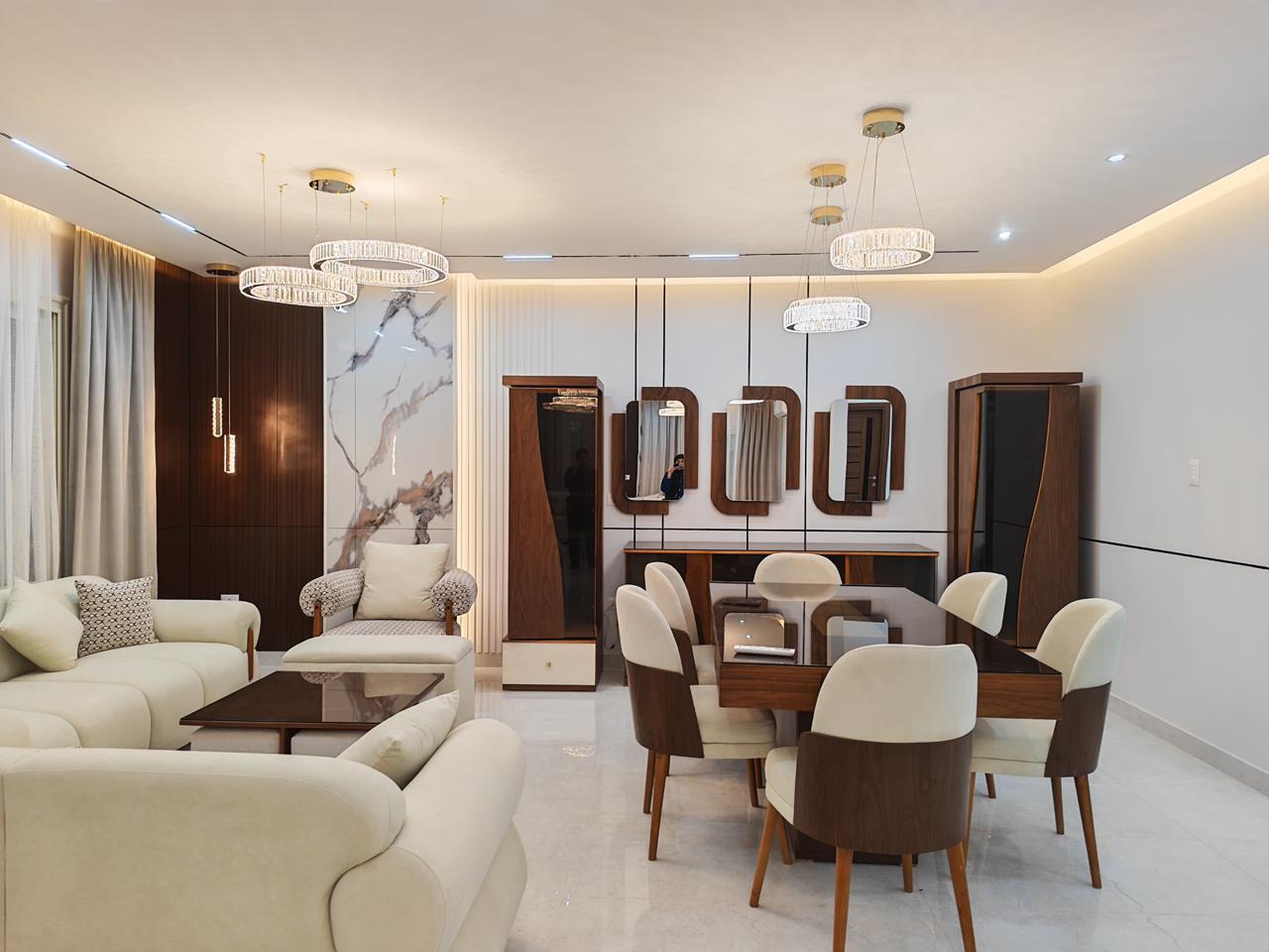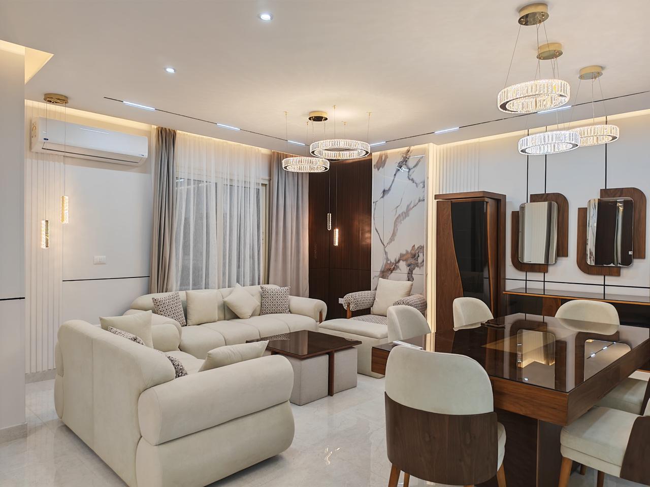 Luxurious Modern Interior Design A design that blends elegance and simplicity, featuring an innovative ceiling with c...